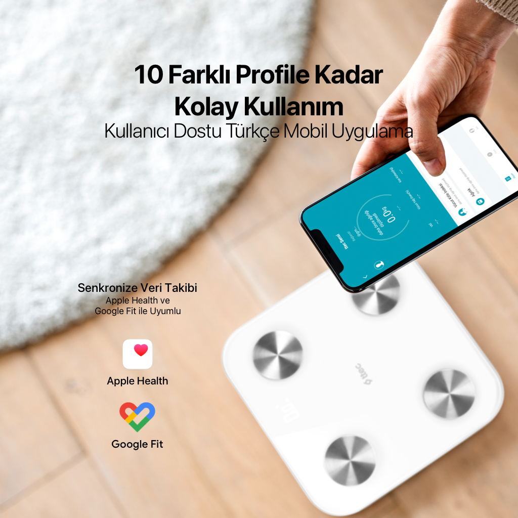- Apple Health ve Google Fit ile mobil uygulamaları ile uyumlu