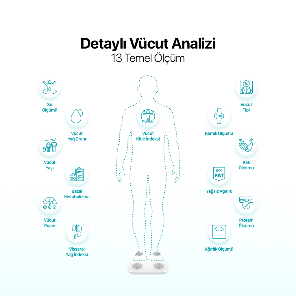 - 13 temel vücut ölçümü ile detaylı analiz