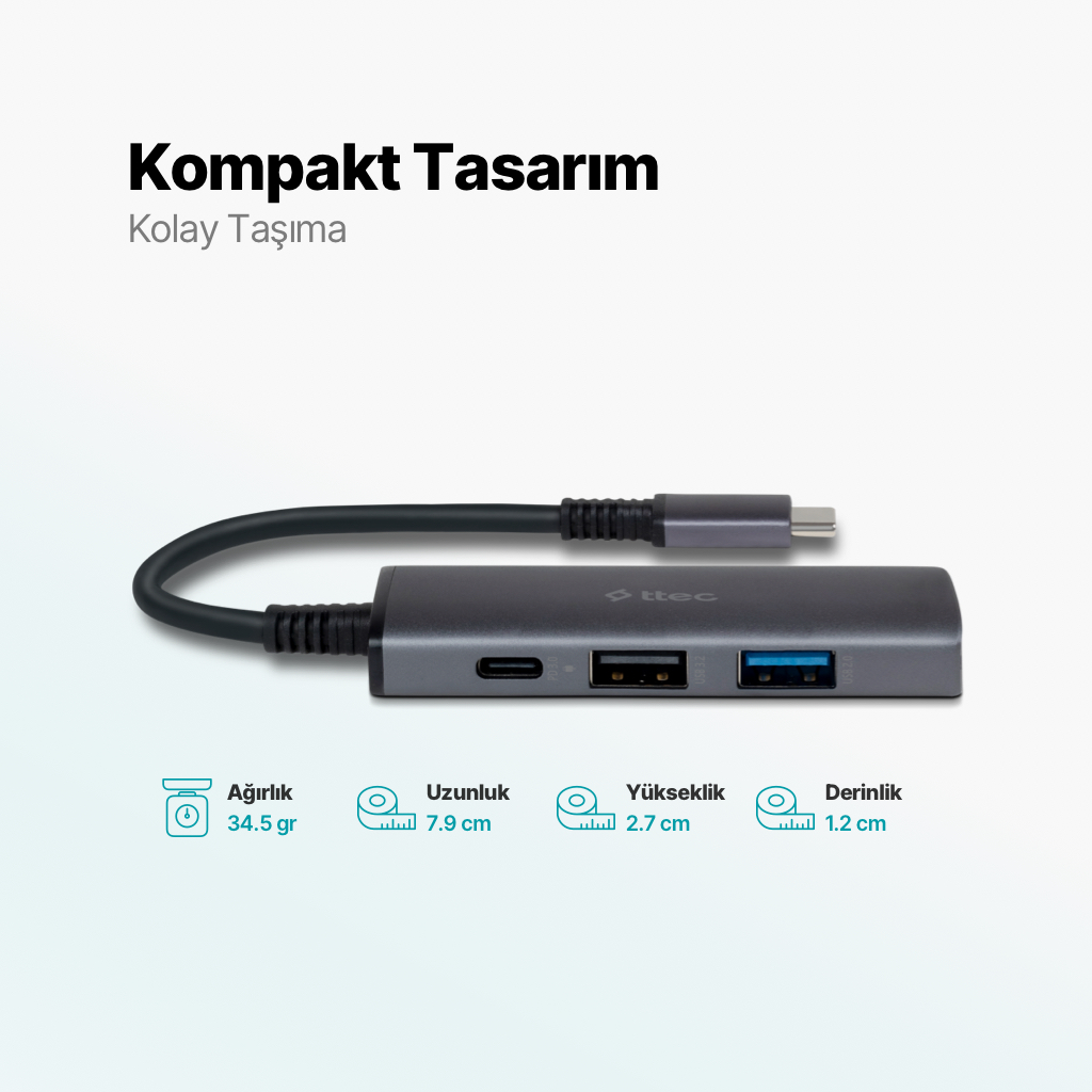 - USB-C 4'ü 1 arada çoklu dönüştürücü adaptör